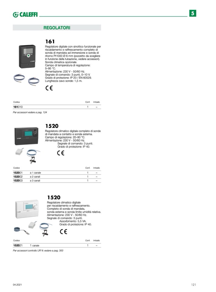 Per accessori controllo UR % vedere a pag. 300