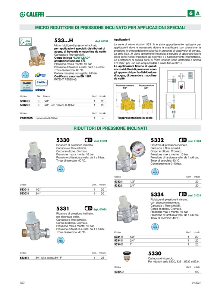 Micro riduttore di pressione inclinato