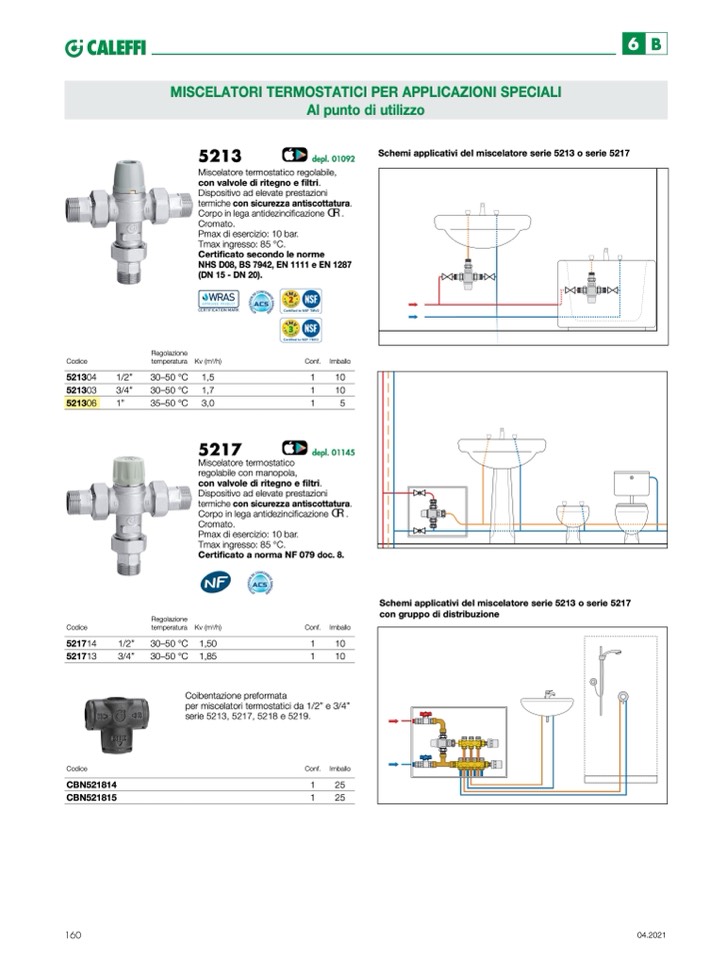 Schemi applicativi del miscelatore serie 5213 o serie 5217