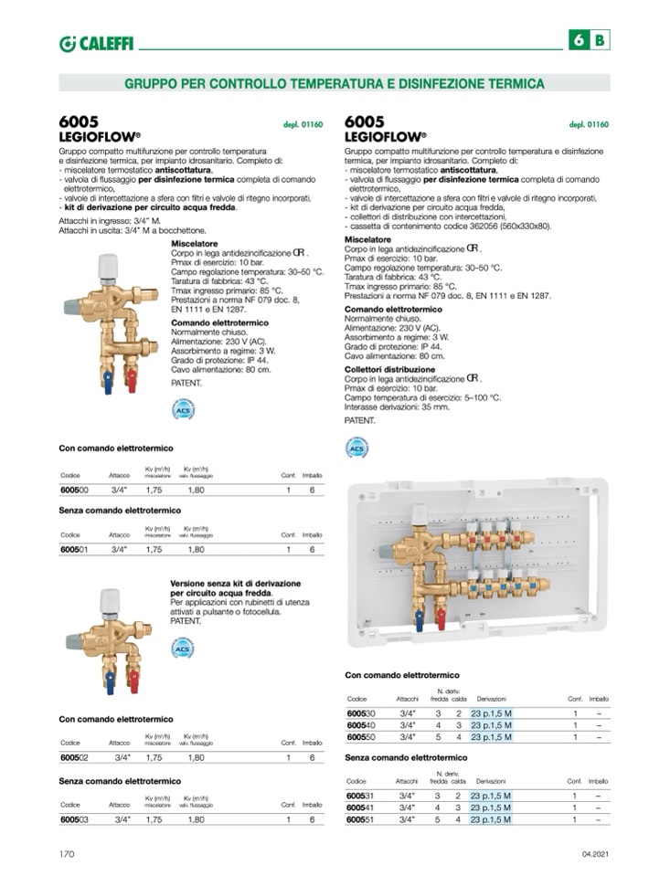 e disinfezione termica, per impianto idrosanitario. Completo di: