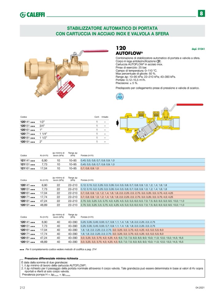 1. il Dp minimo di lavoro della cartuccia AUTOFLOW