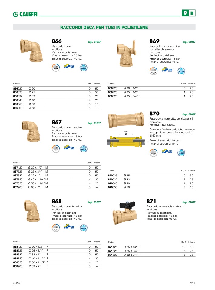 Raccordo con valvola a sfera.