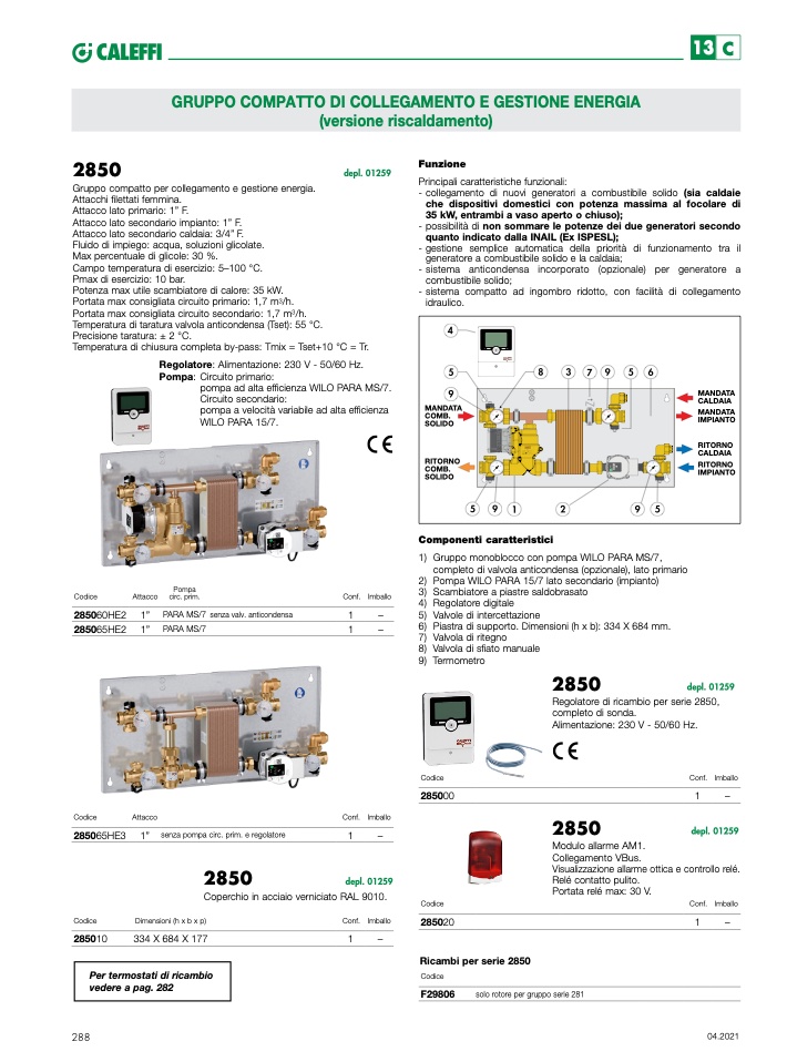 completo di valvola anticondensa (opzionale), lato primario