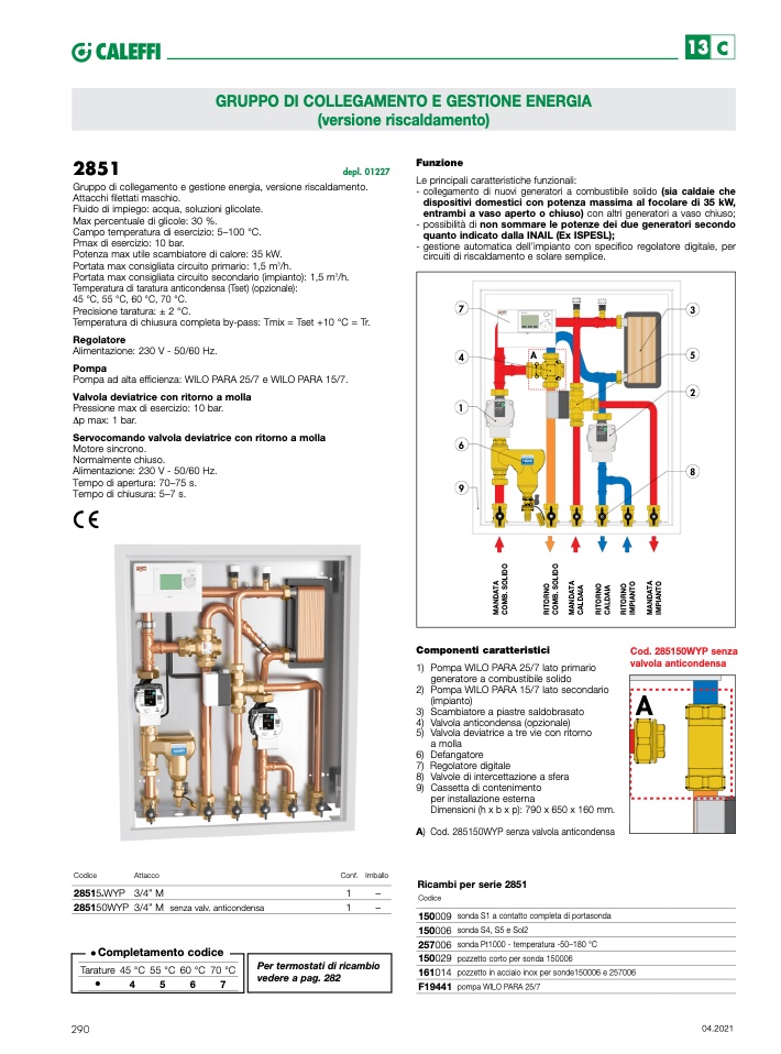 A) Cod. 285150WYP senza valvola anticondensa