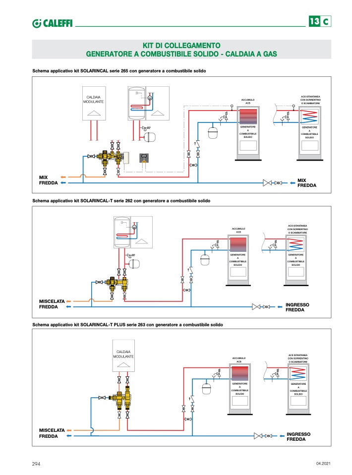 Schema applicativo kit SOLARINCAL-T serie 262 con generatore a combustibile solido
