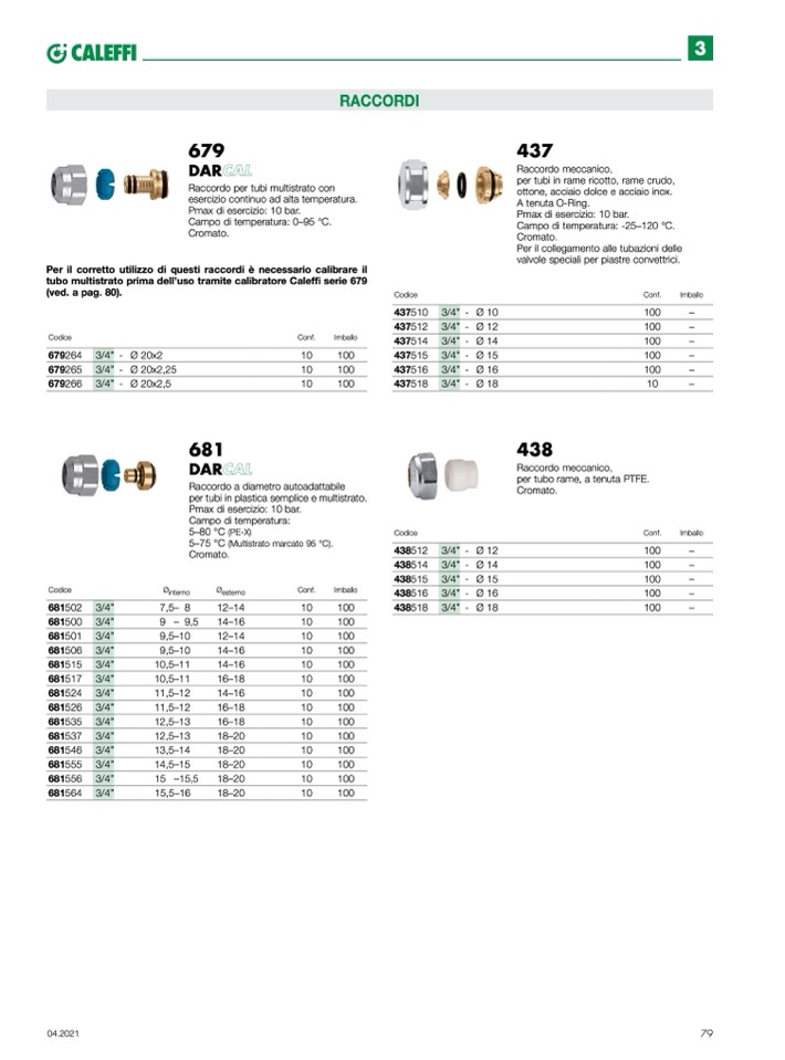 Per il corretto utilizzo di questi raccordi è necessario calibrare il
