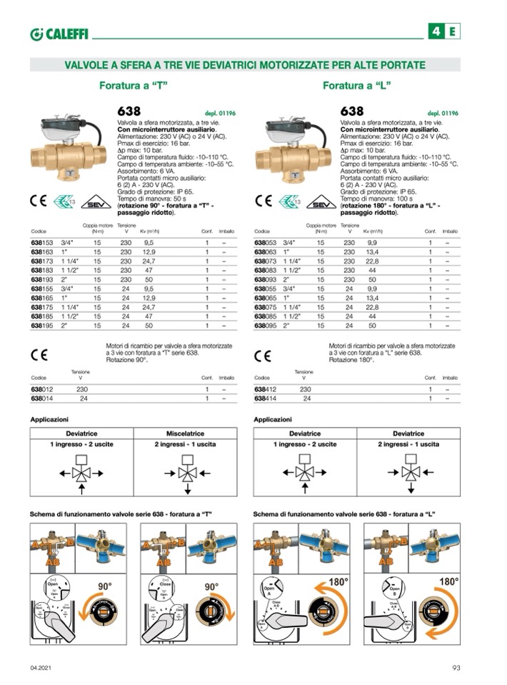 a 3 vie con foratura a “T” serie 638.