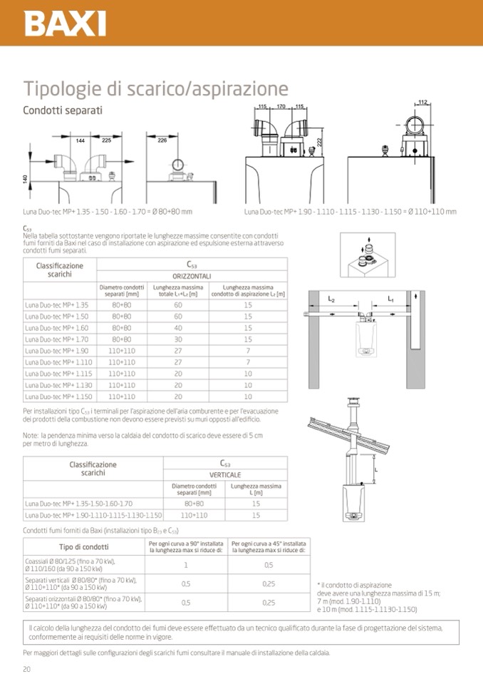 Condotti fumi forniti da Baxi (installazioni tipo B