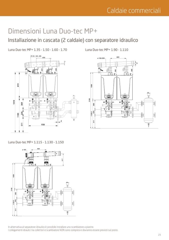 I collegamenti idraulici tra collettori e scambiatore NON sono compresi e dovranno essere previsti sul posto.