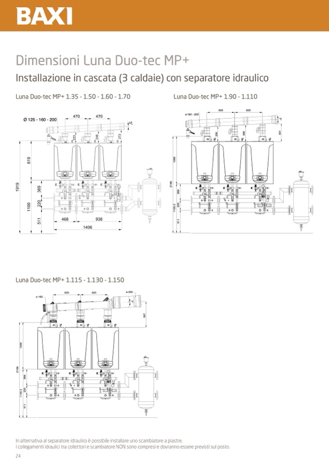I collegamenti idraulici tra collettori e scambiatore NON sono compresi e dovranno essere previsti sul posto.