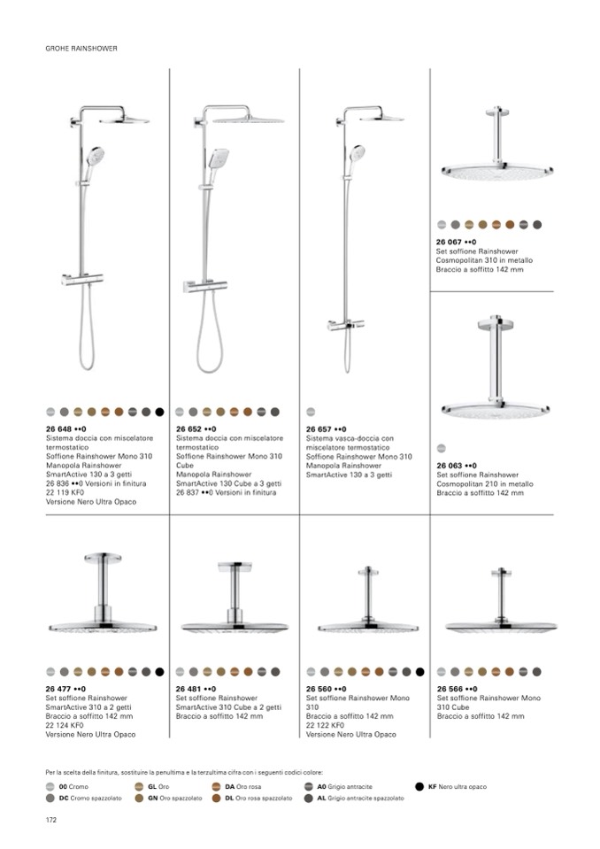Per la scelta della finitura, sostituire la penultima e la terzultima cifra con i seguenti codici colore: