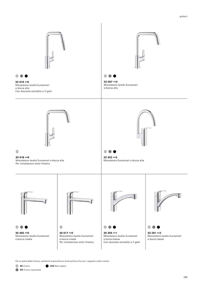 Per la scelta della finitura, sostituire la penultima e la terzultima cifra con i seguenti codici colore: