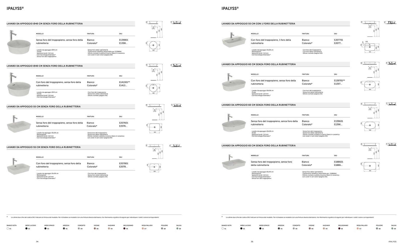 LAVABO DA APPOGGIO 60 CM SENZA FORO DELLA RUBINETTERIA