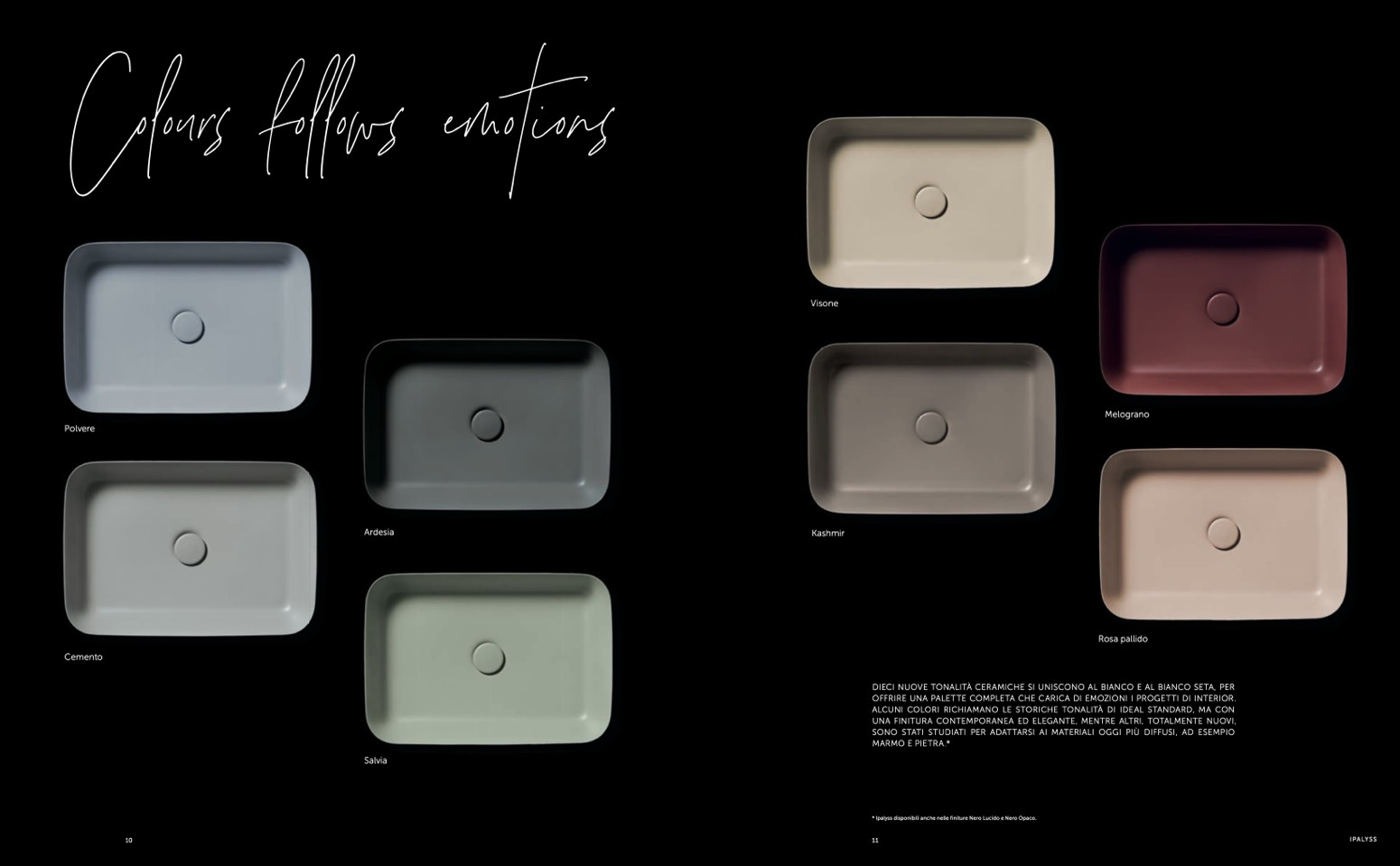 * Ipalyss disponibili anche nelle finiture Nero Lucido e Nero Opaco.
