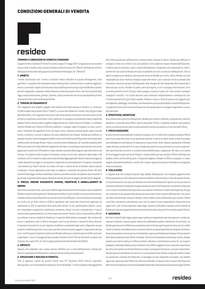 giorni dopo la data della fattura stessa. Resideo si riserva il diritto di correggere eventuali fatture sbagliate.