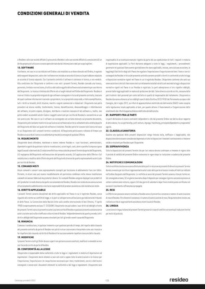 normative vigenti nel Paese in cui Resideo è registrata. Le parti adempiranno ai loro rispettivi obblighi,
