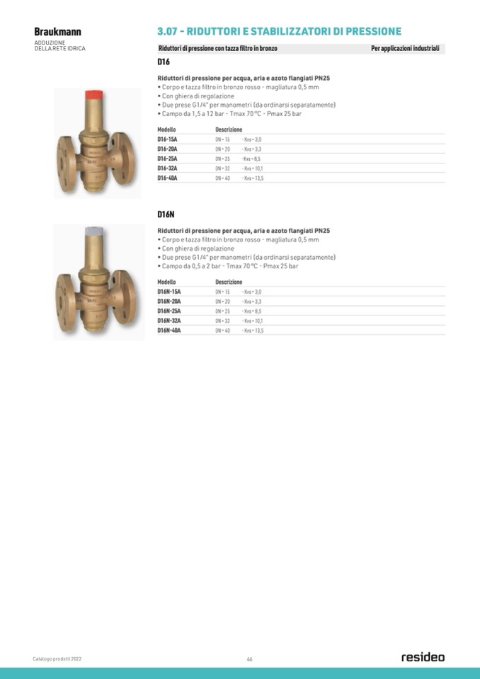 Riduttori di pressione per acqua, aria e azoto flangiati PN25