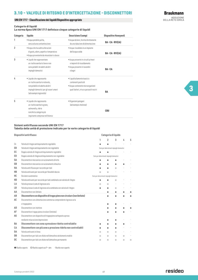 UNI:EN 1717 - Classificazione dei liquidi/Dispositivo appropriato