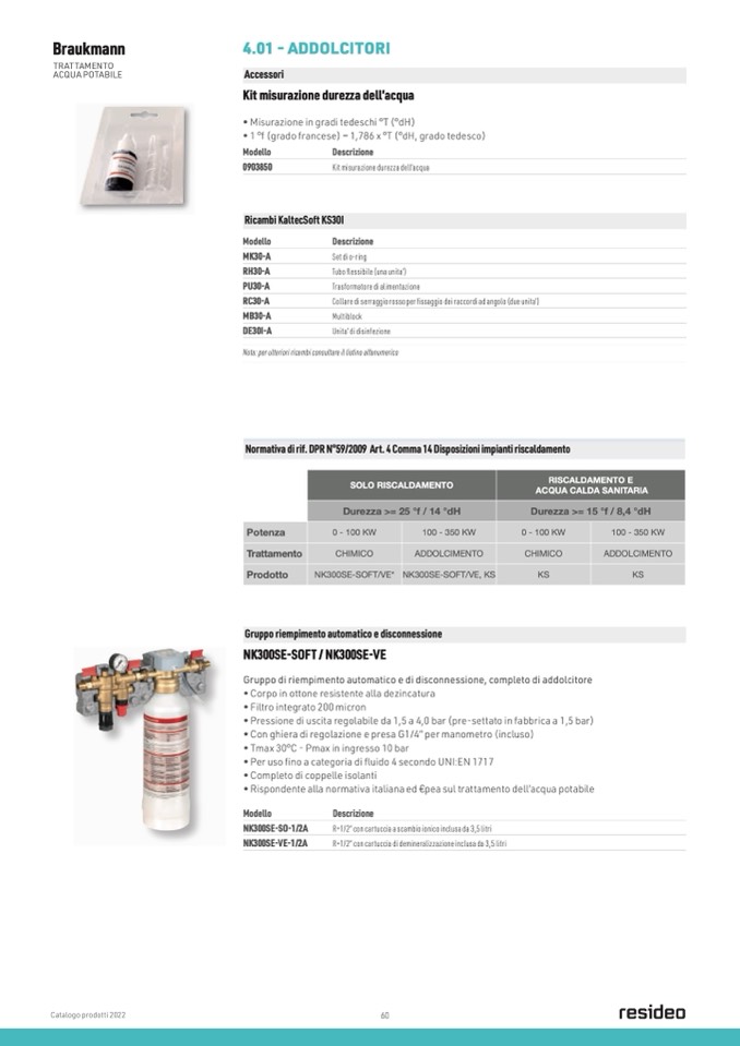 • Rispondente alla normativa italiana ed €pea sul trattamento dell’acqua potabile