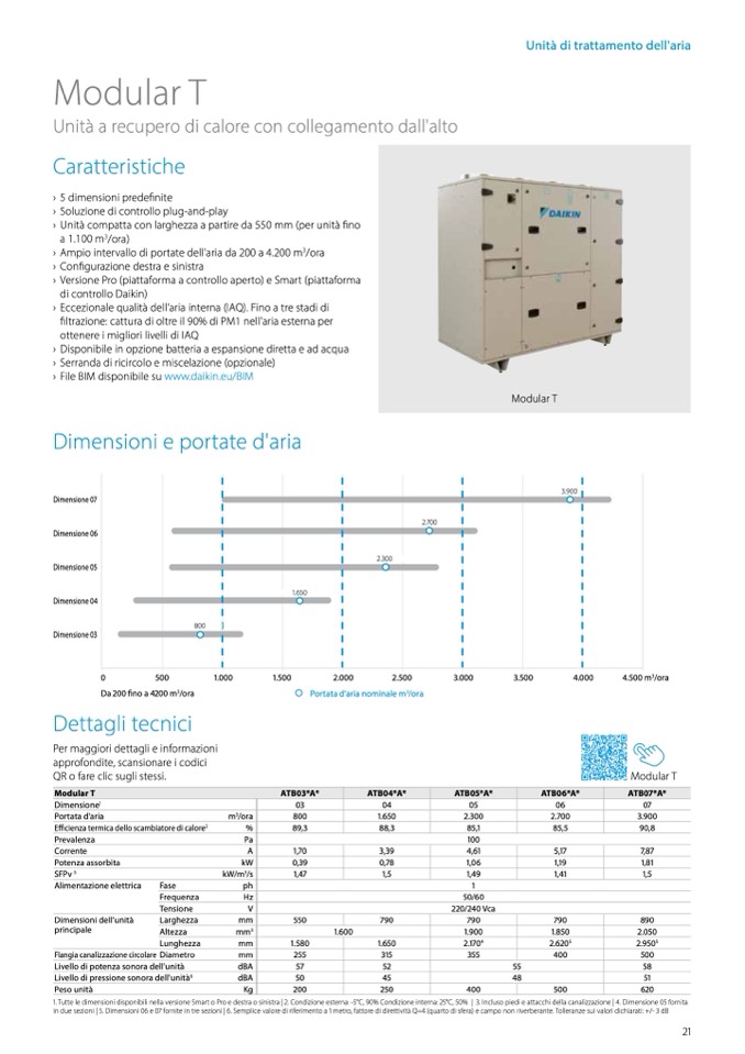 1. Tutte le dimensioni disponibili nella versione Smart o Pro e destra o sinistra | 2. Condizione esterna: -5°C, 90% Condizione interna: 25°C, 50% | 3. Incluso piedi e attacchi della canalizzazione | 4. Dimensione 05 fornita