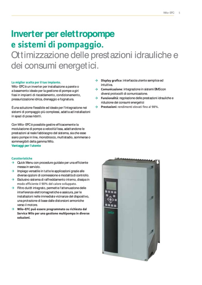 sistemi di pompaggio più complessi, adatta ad installazioni