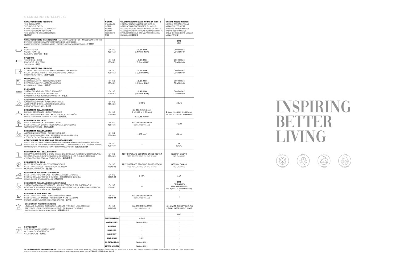 VALORI PRESCRITTI DALLE NORME EN 14411 - G