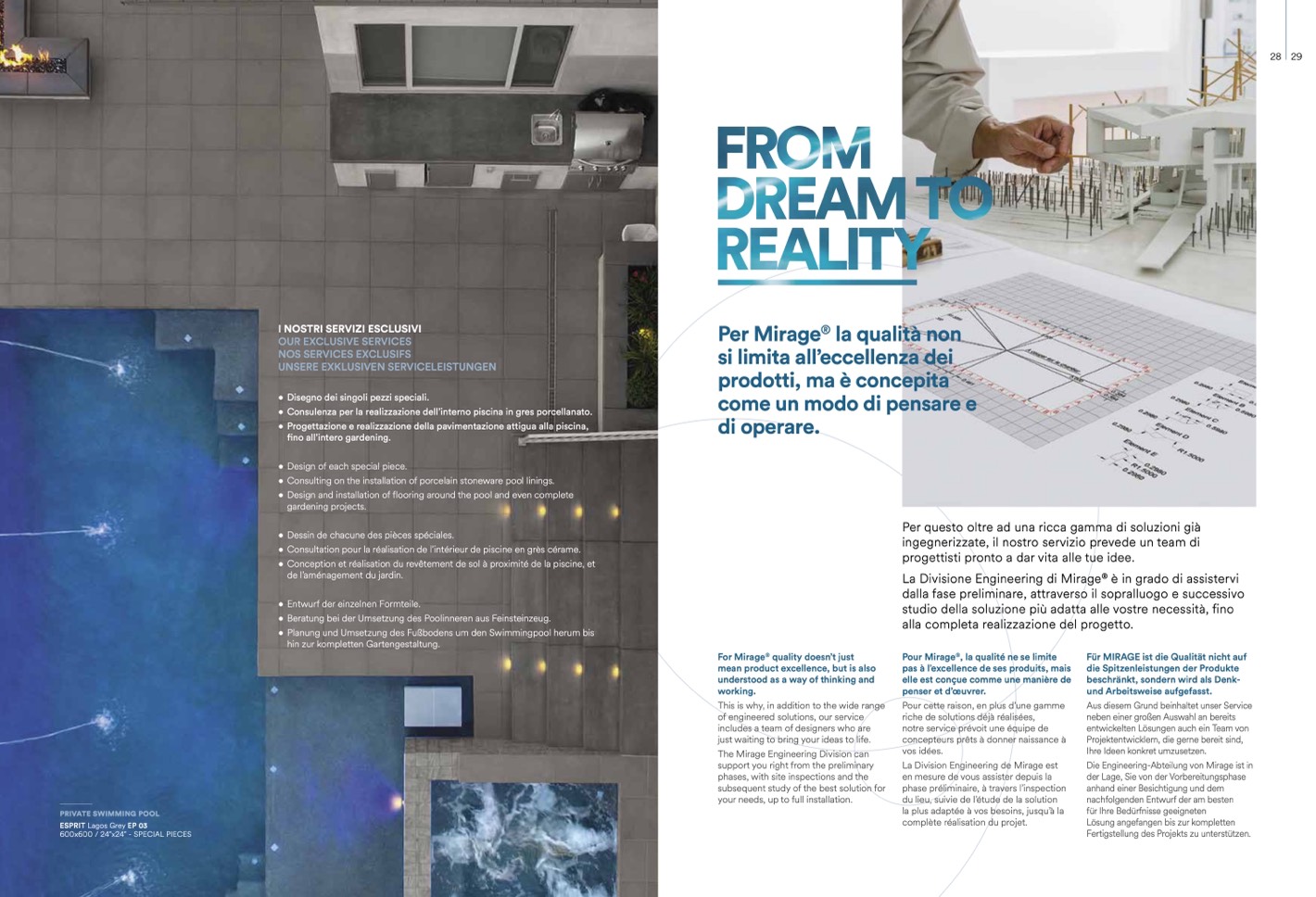 • Consulenza per la realizzazione dell’interno piscina in gres porcellanato.
