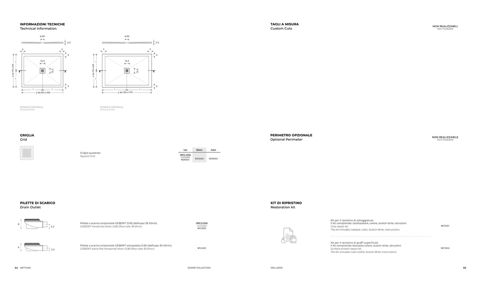 Piletta a scarico orizzontale GEBERIT D.90 (deflusso 39 lt/min)
