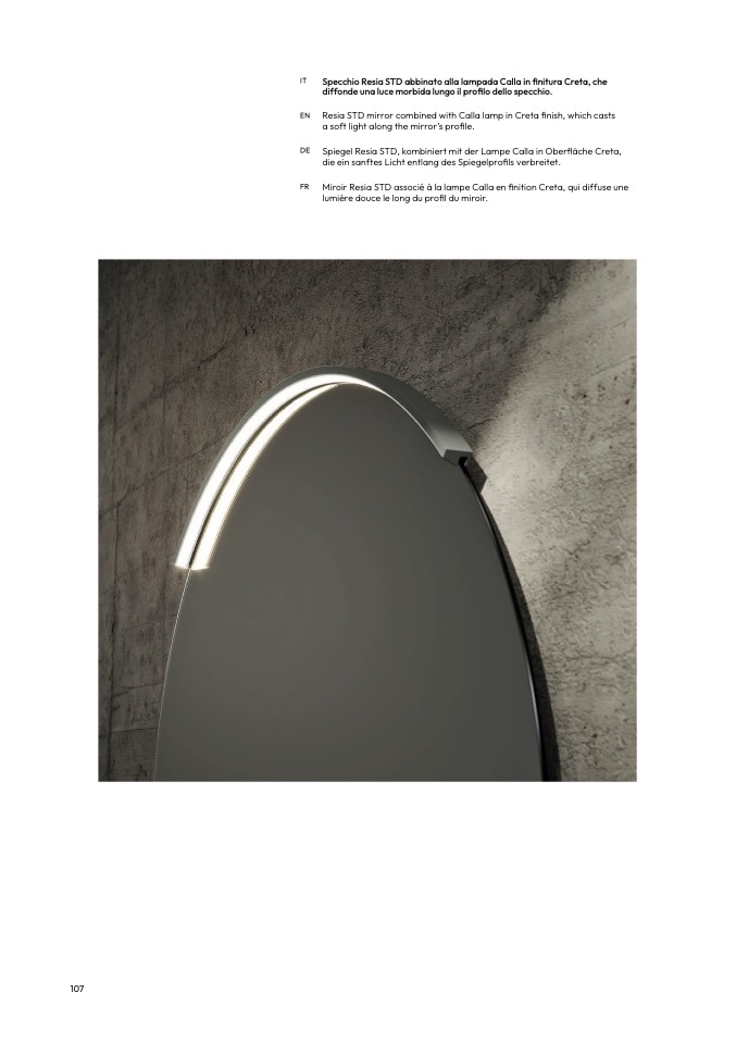 Resia STD mirror combined with Calla lamp in Creta finish, which casts