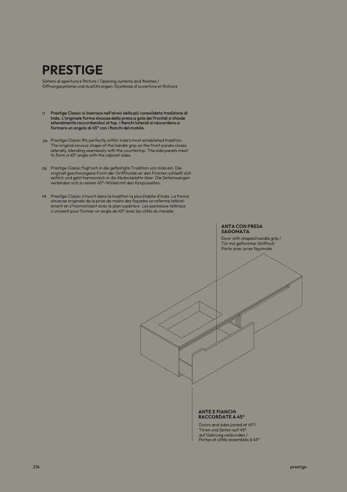 Prestige Classic s’inscrit dans la tradition la plus établie d’Inda. La form