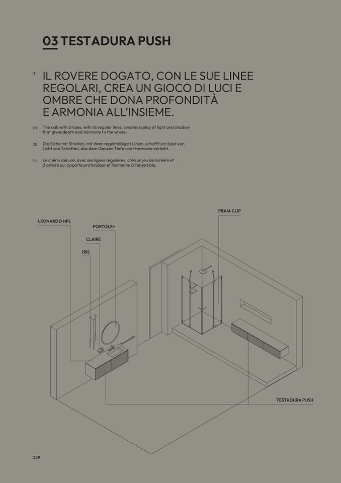 The oak with stripes, with its regular lines, creates a play of light and shadow