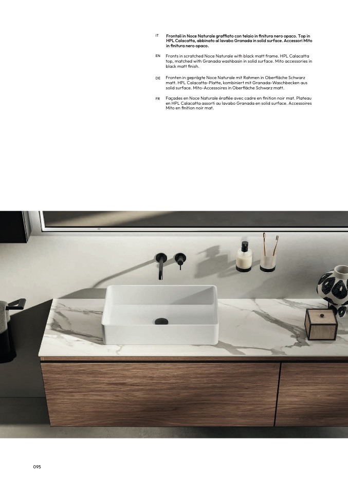 top, matched with Granada washbasin in solid surface. Mito accessories i
