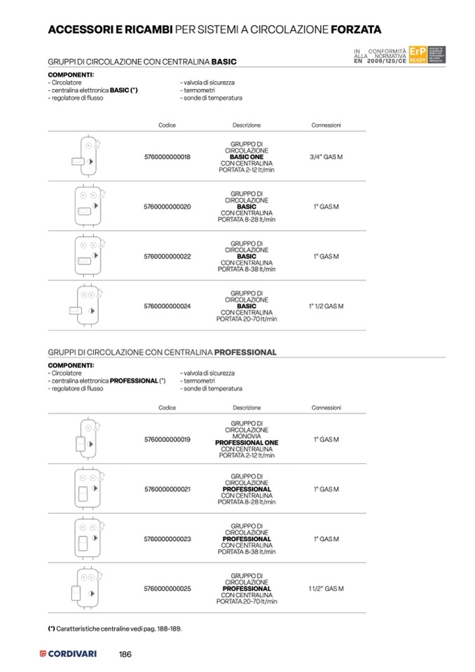 (*) Caratteristiche centraline vedi pag. 188-189.