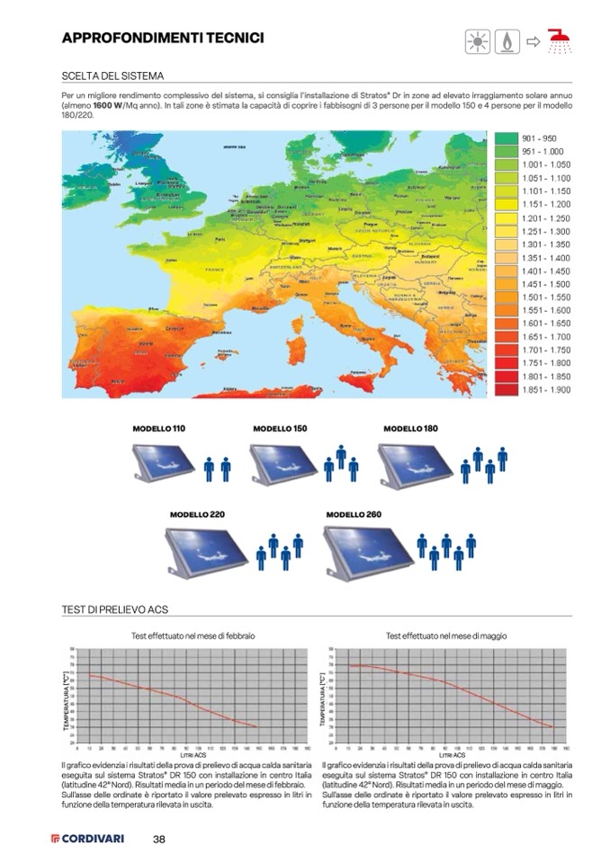 (almeno 1600 W/Mq anno). In tali zone è stimata la capacità di coprire i fabbisogni di 3 persone per il modello 150 e 4 persone per il modello