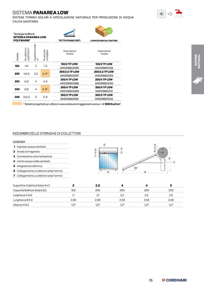 Sistemi progettati per utilizzo in aree ad elevato irraggiamento annuo > di 1600 Kw/h m
