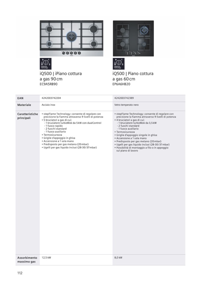 • Predisposto per gas metano (20 mbar)
