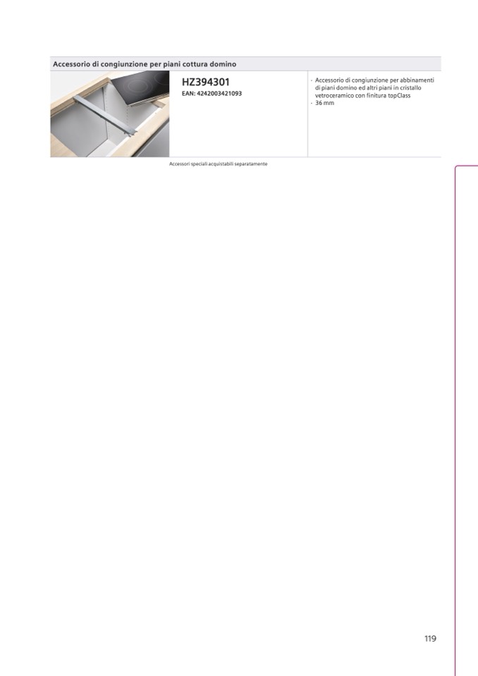 Accessorio di congiunzione per piani cottura domino
