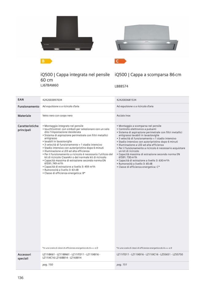 • Capacità massima di estrazione secondo norma EN
