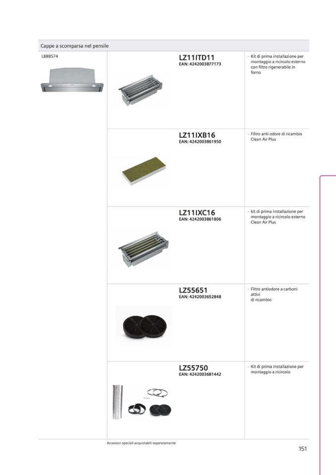 Accessori speciali acquistabili separatamente