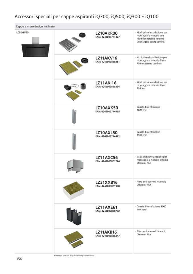 Accessori speciali acquistabili separatamente