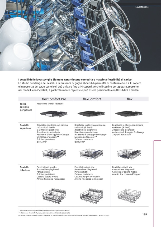 I cestelli delle lavastoviglie Siemens garantiscono comodità e massima flessibilità di carico