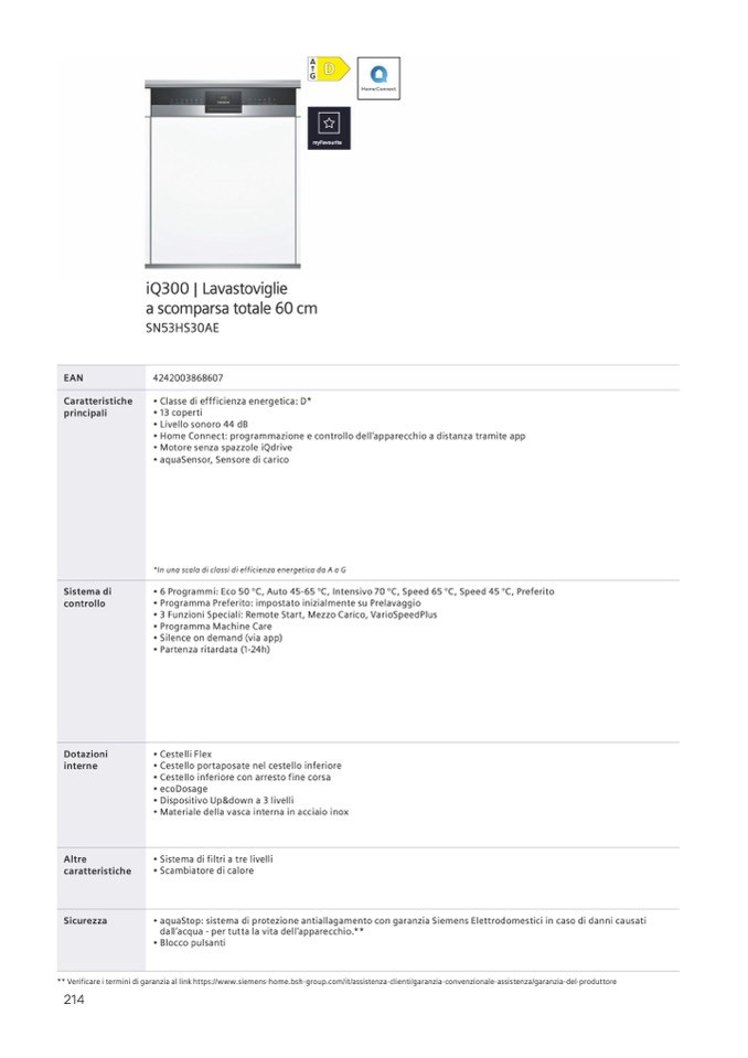 ** Verificare i termini di garanzia al link https://www.siemens-home.bsh-group.com/it/assistenza-clienti/garanzia-convenzionale-assistenza/garanzia-del-produttore