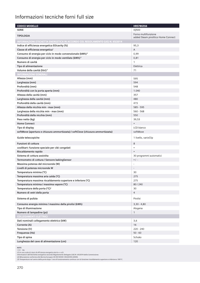 (2) Misurazione conforme alla Norma Europea CEI EN 50304 / EN 60350 (2009).