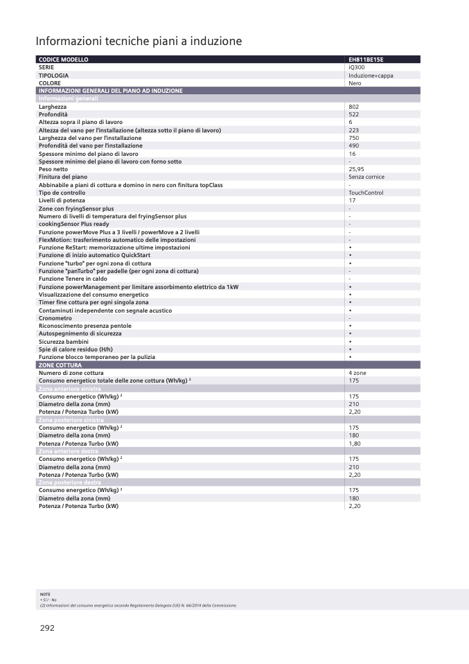 (2) Informazioni del consumo energetico secondo Regolamento Delegato (UE) N. 66/2014 della Commissione.