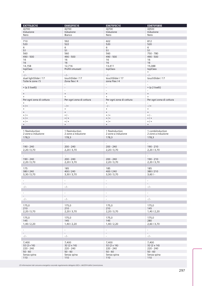 (1) Informazioni del consumo energetico secondo regolamento delegato (UE) n. 66/2014 della Commissione.