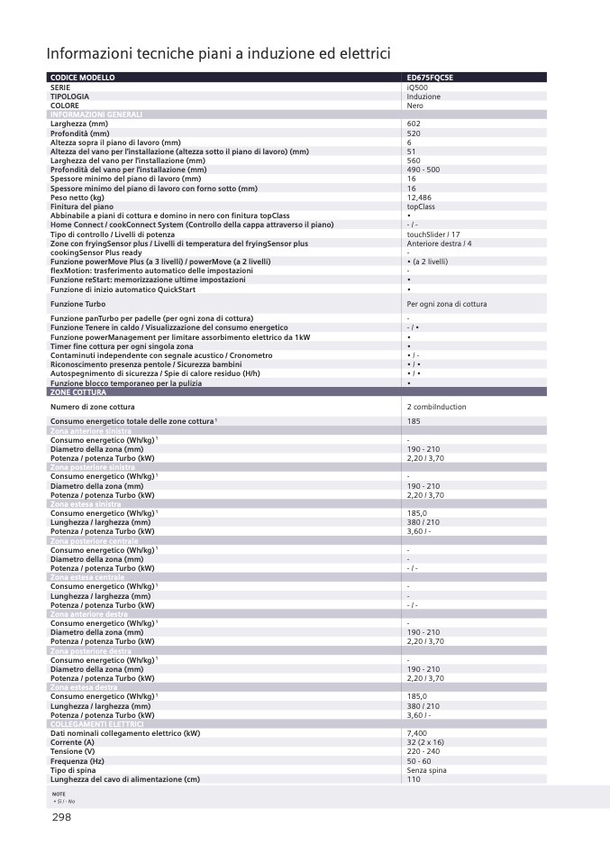 Per ogni zona di cottura