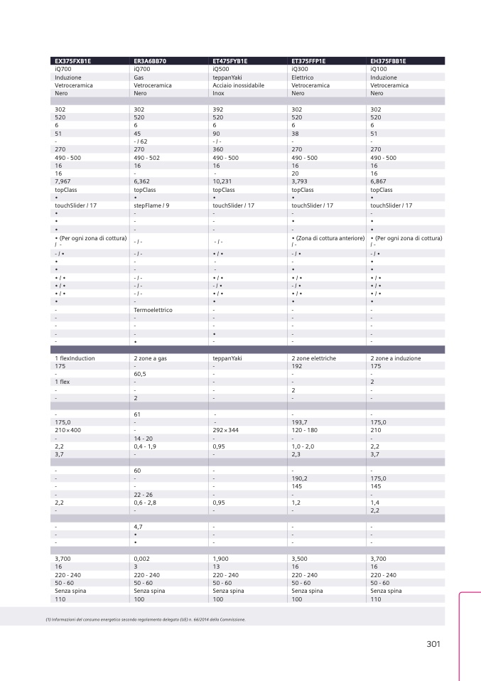 (1) Informazioni del consumo energetico secondo regolamento delegato (UE) n. 66/2014 della Commissione.