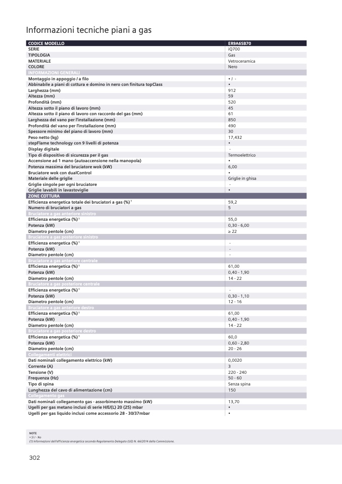 (1) Informazioni dell’efficienza energetica secondo Regolamento Delegato (UE) N. 66/2014 della Commissione.