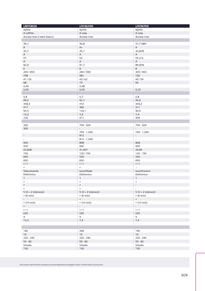 Informazioni dell’etichetta energetica secondo Regolamento Delegato (UE) N. 65/2014 della Commissione.