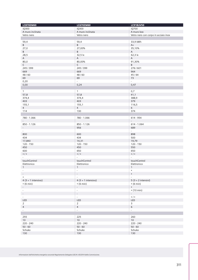 Informazioni dell’etichetta energetica secondo Regolamento Delegato (UE) N. 65/2014 della Commissione.